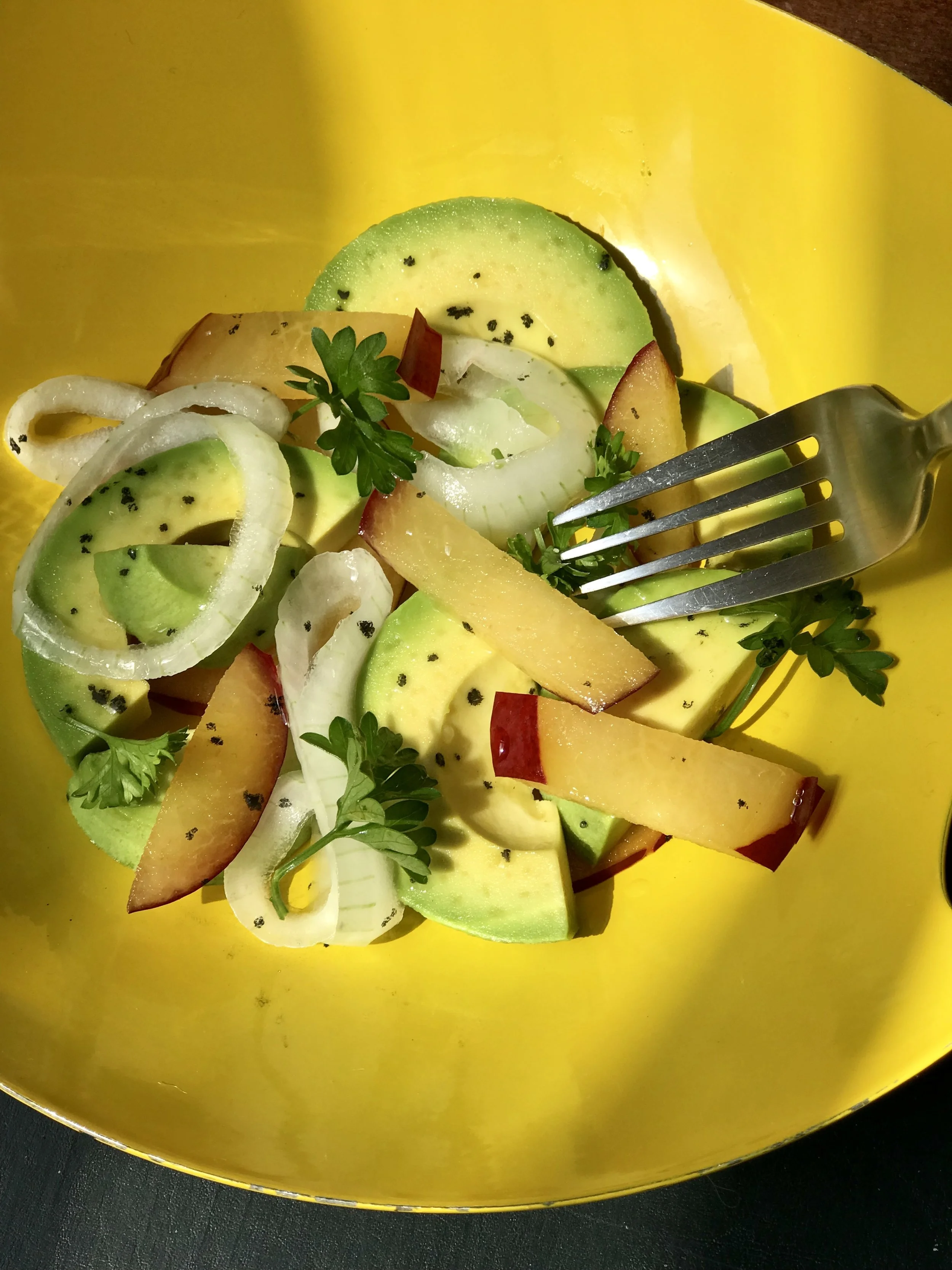 AVOCADO SALAD WITH PLUMS & MARINATED ONIONS